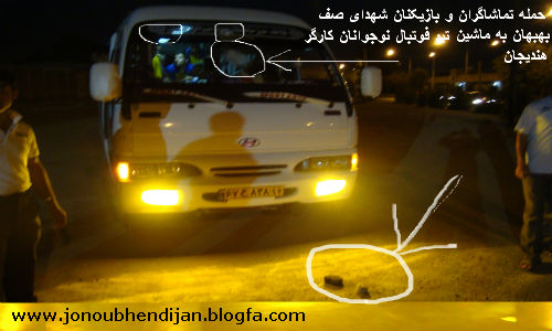 متآسفیم که می نویسیم در بهبهان واژه پر محتوای ورزش با ضد ارزشهای ناشی از درگیری تیم نوجوانان شهدای صف بهبهان رنگ باخت.پس از بازی دیدار نوجوانان کارگر هندیجان و شهدای صف بهبهان در بهبهان در حالی که دیدار بدون اتفاق و یا حادثه مهم بخوبی با شکست تیم بهبهان به پایان رسید.مربی ,بازیکنان و تماشاگران بهبهانی بسوی بازیکنان و ماشین بچه های هندیجان یورش بردند و صحنه های تلخ و تآسف باری را به وجود آوردند.تصویر بالا شاهکار تیم شهدای صف بهبهان را نشان می دهد که نمونه بارز این مدعاست. حساسیت ناشی از شکست-عدم حضور به موقع نیروی انتظامی-عدم قاطعیت در صدور رآی کمیته انضباطی مسابقات و ... از عوامل مهمی هستند که در به وجود آمدن صحنه های زشت و دلخراش درمیان ورزش ما دخالت دارند.با توجه به تذکر و دلایل موجود.از مسولین ذیربط انتظار می رود برای جلوگیری از حوادث مشابه از تدابیر لازم استفاده نمایند تا در آینده شاهد تکرار چنین حوادث تلخی نباشیم. روابط عمومی باشگاه ورزشی جنوب هندیجان [ پنجشنبه یکم تیر ۱۳۹۱ ] [ 12:50 ] [ یونس آبادی ]