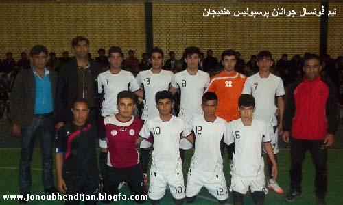در چارچوب ديدار نهايي فوتسال جوانان ليگ برتر خوزستان دو تيم پرسپوليس هنديجان و ملي حفاري اهواز در سالن ورزشي بصيرت هنديجان به مصاف يكديگر رفتند كه اين ديدار در نهايت با برتري 3 بر 2 تيم اهوازي به پايان رسيد. مسابقات فوتسال قهرماني باشگاههای استان خوزستان در رده سني جوانان انتخابي كشوري به ميزباني شهرستان هندیجان در حضور گسترده تماشاگران با حضور هشت تيم در دو گروه چهار تيمي برگزار شد.در گروه الف:تيمهاي پرسپوليس هنديجان,پارسيان شوشتر,جاويد اهواز, شاهين سوسنگرد و در گروه ب:ملي حفاري اهواز-ماهان شوشتر-ساحل سوسنگرد و شهيدمرادي بهبهان با هم به رقابت پرداختند.پس از پايان رقابتهاي مقدماتي از گروه الف:تيمهاي پرسپوليس هنديجان و شاهين سوسنگرد و از گروه ب:تيمهاي ملي حفاري اهواز و ماهان شوشتر به مرحله نيمه نهايي راه يافتند.در اين مرحله ملي حفاري در يك بازي برتر 5 بر 2 شاهين سوسنگرد را شكست داد و پرسپوليس هنديجان نيز 3 بر 1 ماهان شوشتر را از پيش رو برداشت تا دو تيم ملي حفاري اهواز و پرسپوليس هنديجان در ديدار پاياني به مصاف هم بروند.ديدار فينال در حضور بي سابقه تماشاگران هنديجاني در سالن بصيرت برگزار شد.ازدحام تماشاگران به حدي بود كه خيلي از آنان پشت درهاي بسته ماندند.قرمزپوشان هنديجاني كه از حمايت بي دريغ تماشاگران بهره مند بودند نتوانستند جام را در خانه نگه دارند و اسير قدرت و تكنيك حريف اهوازي خود شدند تا ملي حفاري اهواز جام را بالاي سر ببرد.نکته قابل توجه در لحظات پایانی این دیدار هجوم تماشاگران به داخل زمین مسابقه، کافی نبودن تعداد نیروی انتظامی برای تامین امنیت سالن و همچنین درگیری عده ای تماشاگران با بازیکنان حفاری از جمله حواشی ناگوار این دیدار بود.تيمهاي شاهين سوسنگرد و ماهان شوشتر مشتركآ سوم شدند.اسامی بازیکن تیم پرسپولیس هندیجان: فرشید قایدی-سجاد درویشی-محمد بهزادی-بنیامین بهزادی-فرهنگ شعبانی-مهرداد شعبانی-سامان صحراگرد-محمدعلی شعبانی-محمد شعبانی-محمد امیدوارپور-مهدی اسحاقی زاده-رضا شکاری-فرشید کیانی-رضا حیات هندیجانی.سرمربی:توفیق عبادی-سرپرست:مهرداد پیرامون